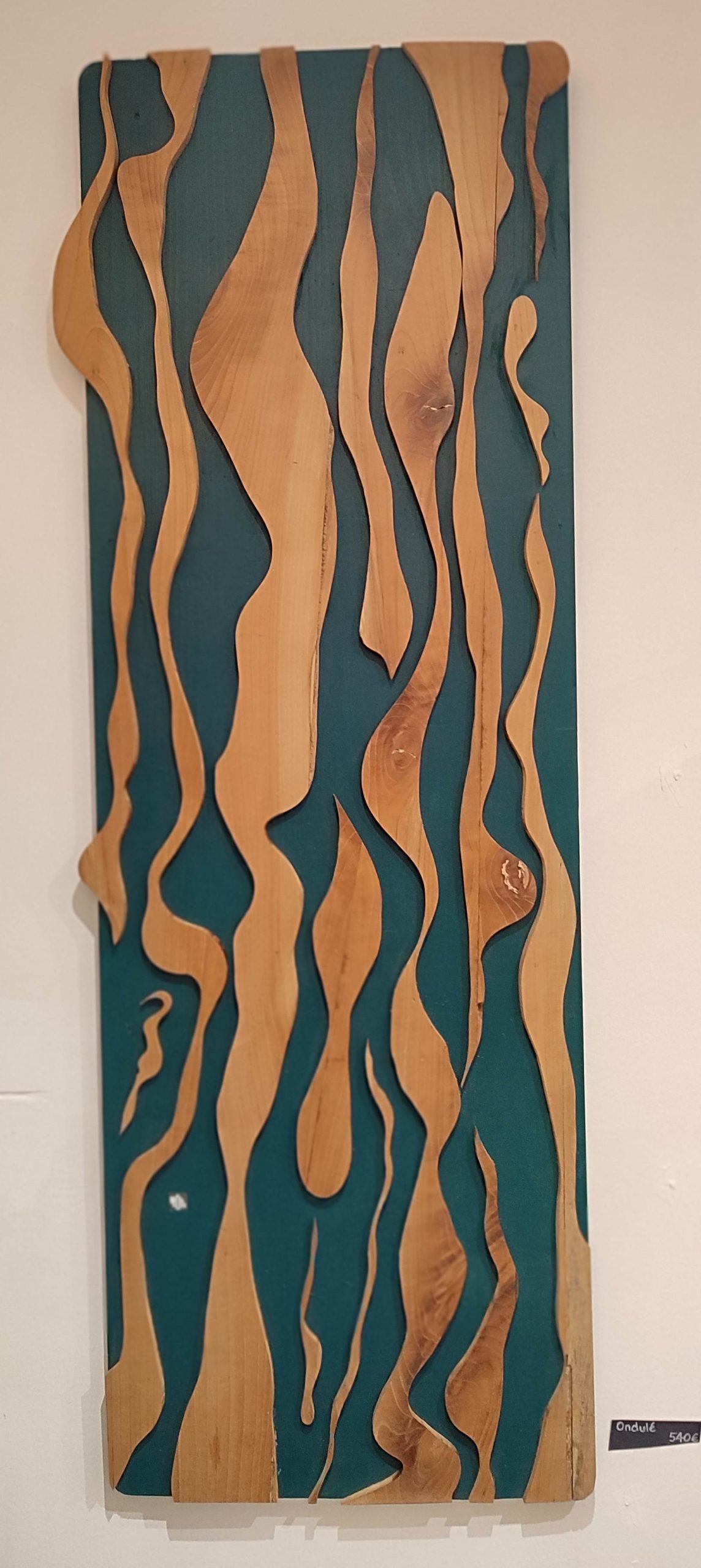 Ondulé #5 : Bois sculpté en Merisier sur fond peint.